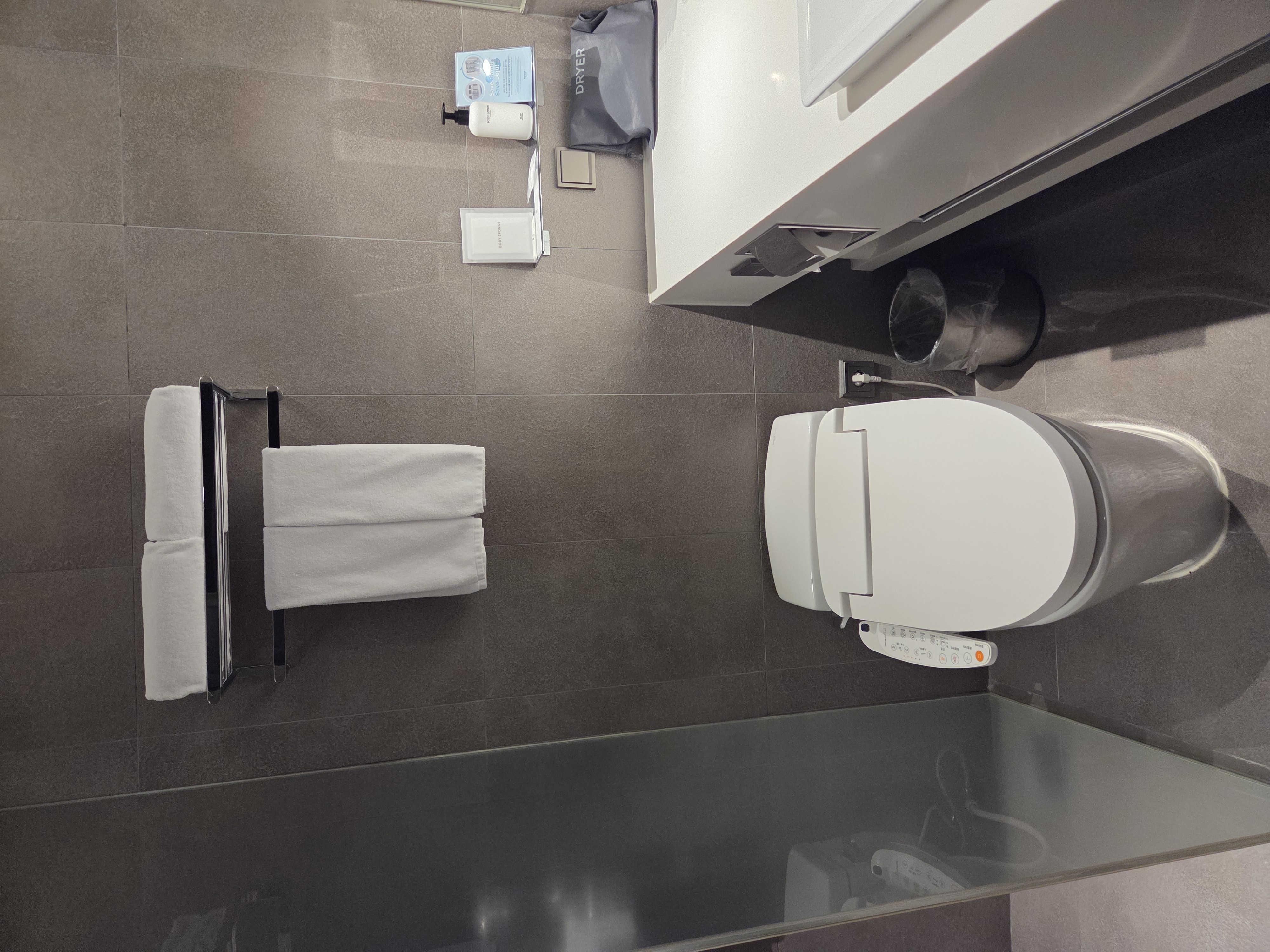 메종글래드제주 객실은 실내 공간이 넓고 쾌적했습니다. 오랜 역사의 호텔인 만큼 건물 연식이 있는 편이지만, 관리 상태가 매우 우수하여 체크인 직후부터 청결함에 만족감이 느껴졌습니다. 가장 인상적이었던 것은 침구였습니다. 구스 이불이 제공되어 포근하고 따뜻했으며, 푹신한 베개 덕분에 피로가 한 번에 풀리는 숙면을 취할 수 있었습니다. 아이와 함께 방문하는 가족에게는 아기 변기커버, 침대 가드, 발받침대 등 아기 용품 대여 서비스도 제공되고 있어 더욱 편리하게 이용할 수 있었습니다.